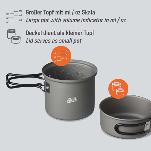エスビット(Esbit) キャンプ アウトドア用ポット クッカー アルミニウムポット 1000ml ESPT1000HA グレー